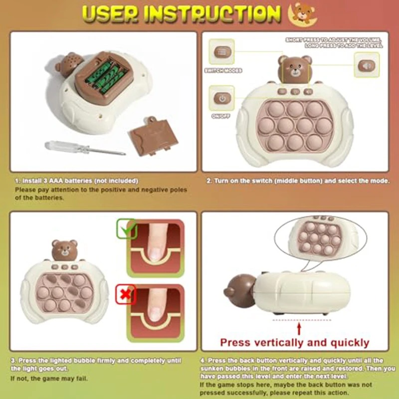 2. Les jouets anti-stress Fidget pour console de jeu Quick Push🎮sont le moyen idéal pour soulager l’anxiété et le stress tout au long de la journée.Avec leur uniquemécanisme à bulles en rafaleetmusique dynamique🎵, ces jouets offrent une expérience tactile satisfaisante et un plaisir audulier avec une variété de modes de jeu😋, alors venez les découvrir!